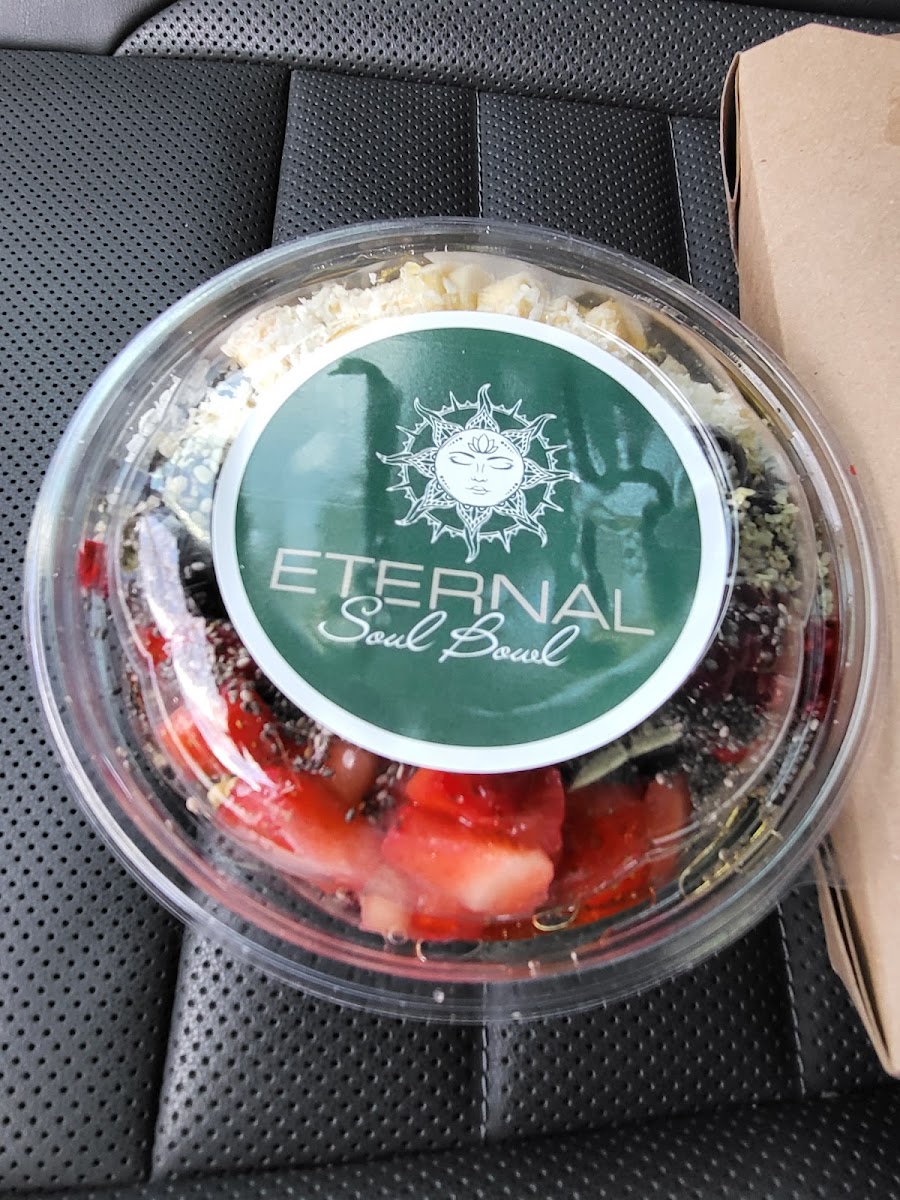 I love the Lotus açaí bowl here, it was absolutely delicious—definitely the best I’ve ever had! The açaí base was thick, rich, and not overly sweet, and the toppings were fresh and generous. I especially enjoyed the combination of pomegranate and cocoa nibs, and a drizzle of honey, which made for a refreshing and satisfying treat. The location is perfect, especially in the summer. It has a relaxed, welcoming vibe. The staff were friendly and quick with my order. I rarely leave reviews but I feel that this place deserves some more 5 star ratings! If you’re looking for a healthy and tasty snack, or light meal I highly recommend Eternal Soul Bowl, you will not be disappointed.